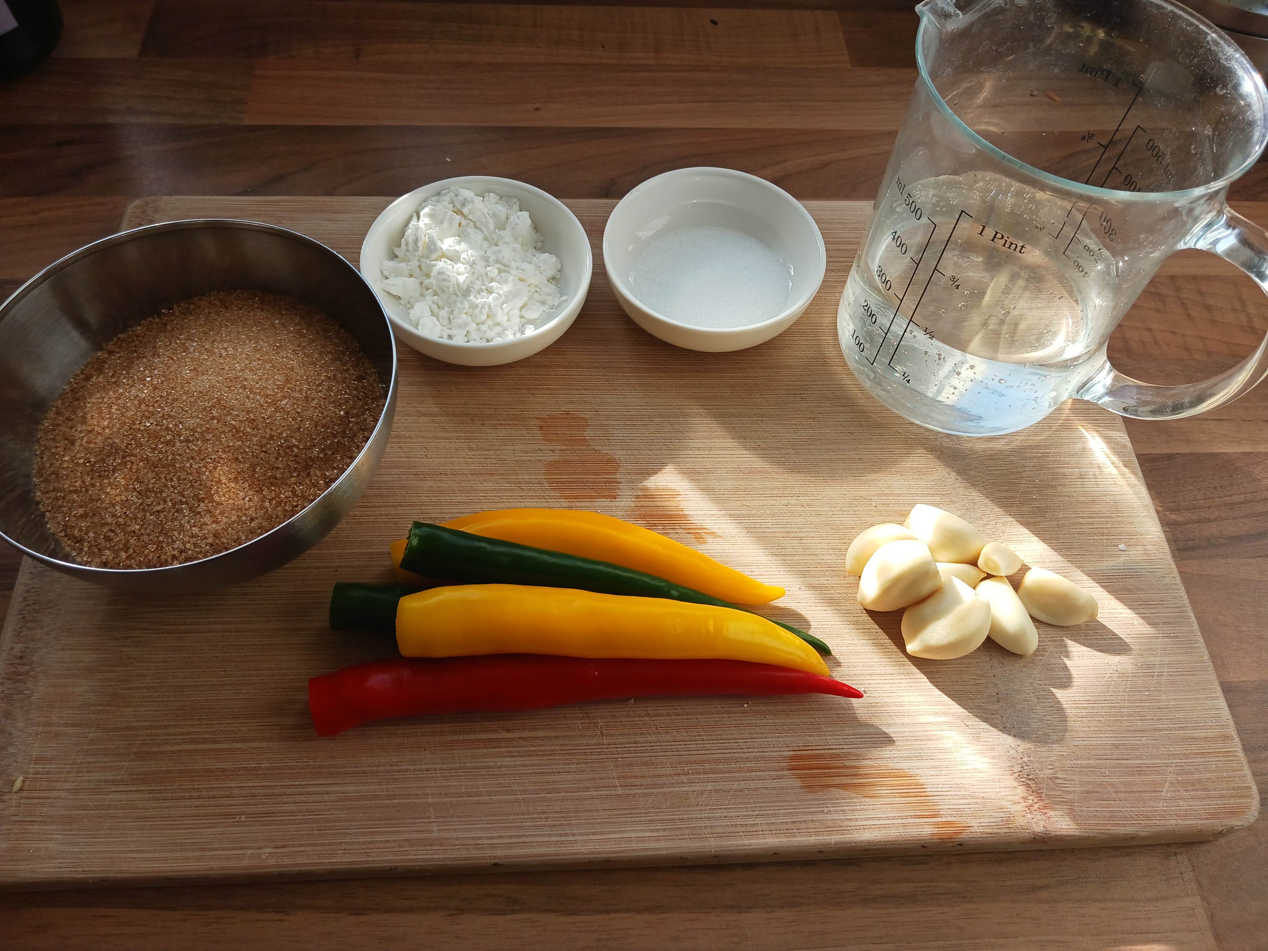 Süße, scharfe Soße ist für Hühnchen ungeschlagen! Das Rezept mit Chilies aus einem deutschen Supermarkt ist extrem nah dran an der fertigen Soße. Warum möchte man die selbst herstellen, wenn man eine Flasche in jedem Asia-Markt bekommt? Nun, hier hat man bessere Kontrolle über die Schärfe und den Zuckeranteil.